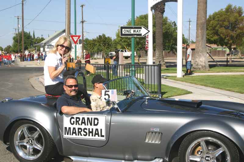 The only disappointment with being named a grand marshal of the Kerman Harvest Festival and Parade is that you don’t get to keep the cool ride supplied by the Chamber of Commerce! Below, Rhonda and Steve Armstrong enjoy the place of honor Saturday morning, Sept. 15.