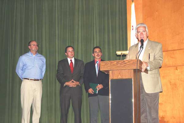 Special ceremonies were held Thursday afternoon to commemorate the loan/grant. Officials met in the Firebaugh Middle School multipurpose room for a meal, mariachi music and speeches. Shown above, from the left: Firebaugh Mayor Craig Knight, USDA Rural Development State Director Ben Higgins, Firebaugh City Manager Jose Ramirez, US Congressman Jim Costa.