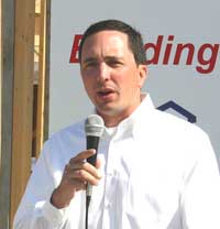 Kicking-off a month-long series of home dedications and events around the state, last week in Biola, Higgins congratulated families on their hard work, and lent a hand raising walls in the 23-home subdivision. The homes, developed with the assistance of Self-Help Enterprises (SHE) are slated for completion later this year.